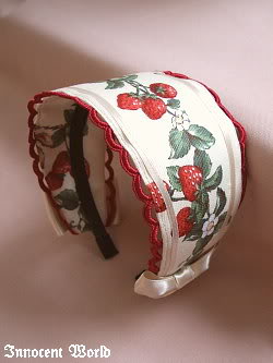 The first release was in 2008, when I was just getting in to lolita. It came in 3 colors: pink, beige and black. The beige is really a white-ish color, and the pink is very soft and beige-y as well. There was an OP, a JSK, a skirt, knee socks, a rectangle headdress style headband, a cutsew, a bolero with knit strawberries, a ring, a necklace, and a blouse. From this series, I have the ring, which oddly enough, is on an almost key-ring-like base, even though it’s meant to be worn as a finger ring as far as I can tell and the headdress in pink. At one point I had the bolero, from a lucky pack, but knit strawberries just really aren’t my cup of tea, so I sold it.