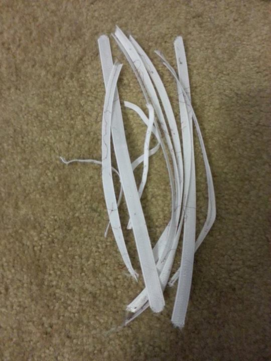 She was kind enough to take the boning out of MT for me as well. Here is the pile of boning and elastic that she took out!