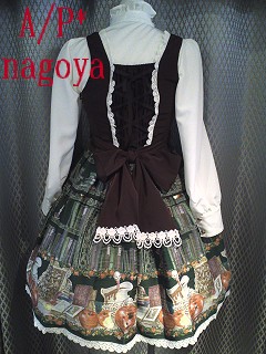 That said, I now have owned two skirts and five jumper skirts from Baby / Alice and the Pirates. Of them, I sold one skirt (couldn’t fit a petticoat because of a bizarre lining) and one JSK (Treasure Hunt in the Mystic Island Alvida JSK – came to me 6cm smaller than the stated size, and couldn’t even be worn at half the size it was because of how delicate it was). I’m holding onto an AatP luckypack JSK (actually the best constructed piece I have from them.), a black JSK with a fruit print (waist ties aren’t faced and it isn’t lined, but it’s ok-ish; slightly better than good pieces from bodyline), Clockwork Teaparty Skirt (waist ties aren’t lined, not water safe, otherwise fine) and the two above. So far.. I’m just not impressed with Baby/AatP. They have so far sold me two pieces on reserve and one piece second hand that were basically constructed in a way that made wearing them while inside the measurements provided potentially damaging to the garment. This really is frustrating, because I like some of their pieces, but at the same time, I feel like I can’t trust them as a brand.