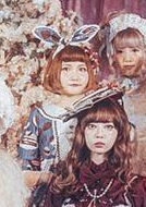 It looks like this girl is wearing a JSK with a short sleeved blouse, a bunny ear headband with a small mint bow and a plush rabbit on the side of her head (maybe a keychain that they pinned on?)