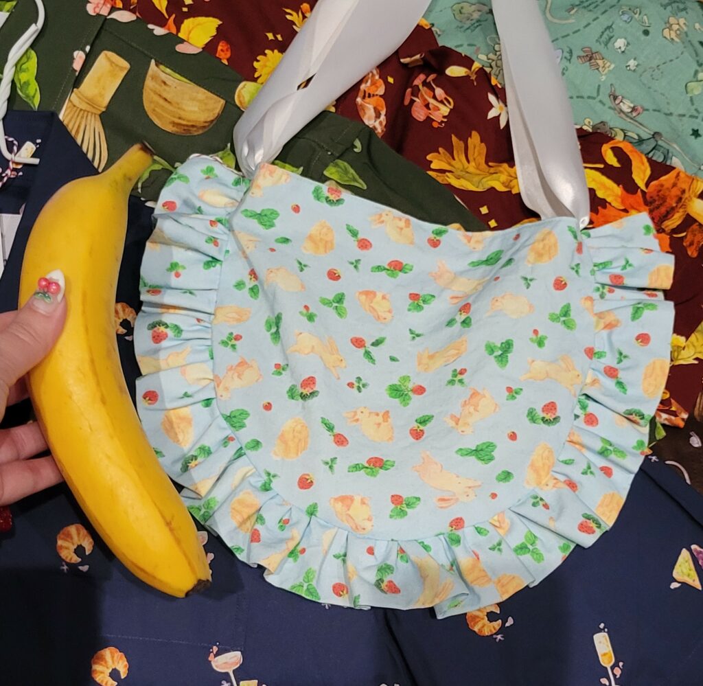 Shopping online can be a struggle. I know I personally am particularly bad at figuring out how big something is or isn’t from the photos and/or measurements, and so many lolita items have to be bought online because in person sales are so rare. This past weekend I attended Fanime in California and had the luxury of being able to see a bunch of things in person to see their actual size. Now, I’m American, and we all know that Americans will use anything else except the metric system to measure things. Which brings me to this month’s Bibliotheca theme: Banana (for scale).
