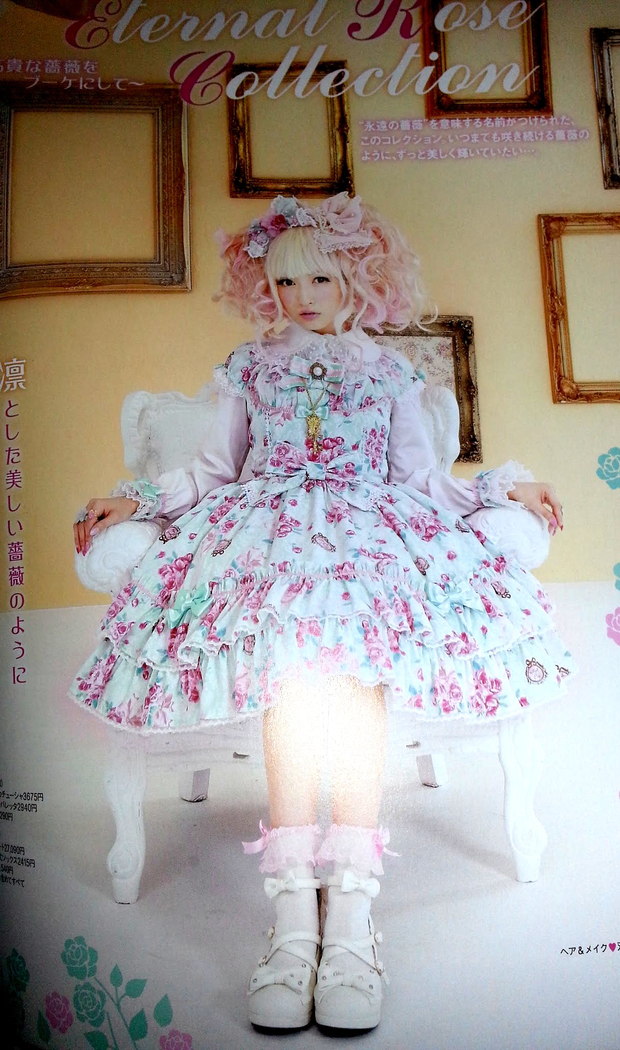 The latest GLB (#47) had a big spread on Angelic Pretty’s upcoming collections in the front. One of those, which I haven’t hear much about was titled “Eternal Rose Collection”. This may not be the final name for the print, as the pre-release GLB English page titles often do not match the final item names when they are launched.