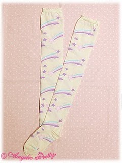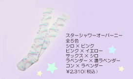 Shooting Star OTK Socks (スターシャワーオーバーニー) – ¥2,310 (White × pink, pink × yellow, sax × white, lavender × lavender, navy blue × lavender)