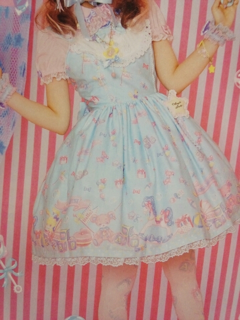 I’d love to see a print with AP’s mascot characters in more mature forms, like Day Dream Carnival’s ponies. I love Shy Bear and Lyrical Bunny, they’re so adorable. But IDK, after owning Toy Parade, I don’t really want another pastel super-childish print in my closet. It just seems like Toy Parade version 2.0, The original does it better, IMO, especially the design of the JSK. Plus I feel more comfortable saying the name of the print rather than “DREAMY BABY ROOM!!!” I can look past a random nursery block, and an elephant on a string, but slap “Baby” in the name and add a baby carriage and it’s just waaaay too much.