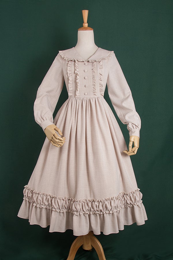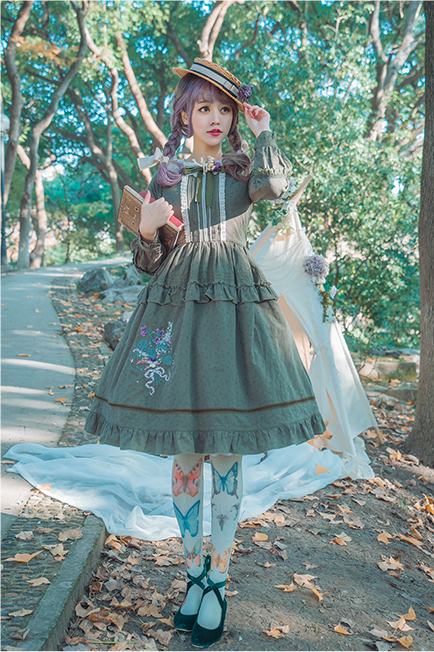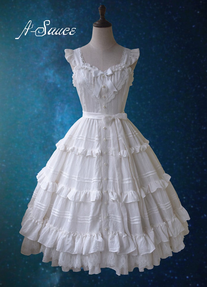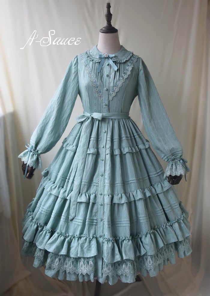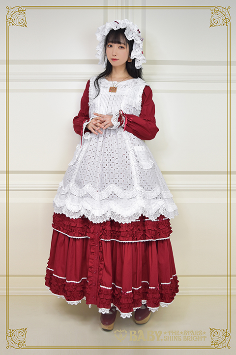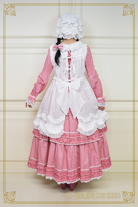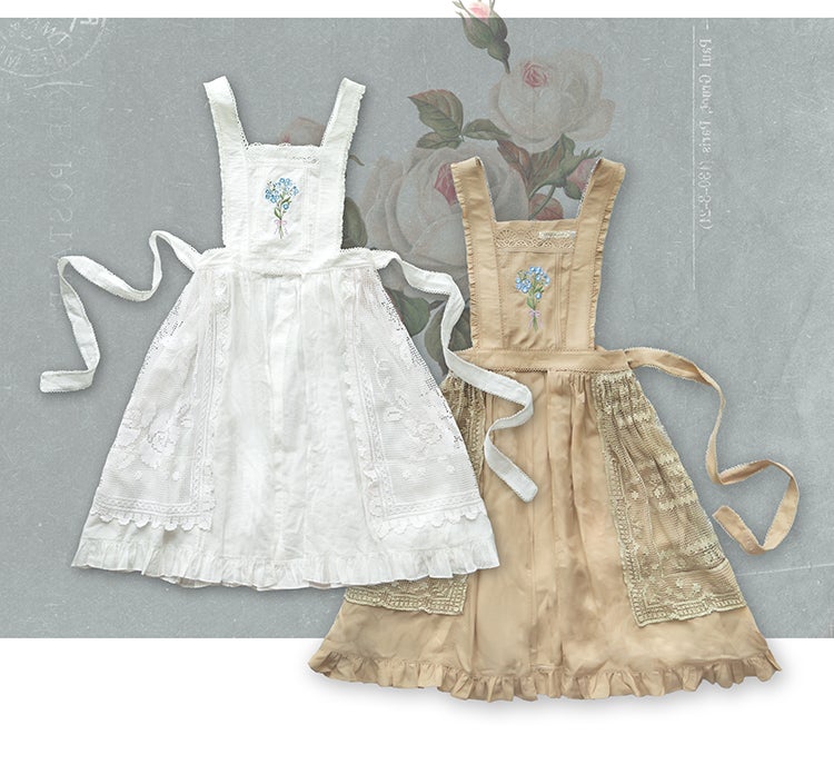 Around 2017-2018-ish, I started to see a trend with Chinese indie brands where there were these solid colored classic pieces that had heirloom details, and longer skirts. Some had front button details like these pieces from A-Sauce and others, like this little Dipper OP were just very classic. And, pieces like this have kind of always existed to some degree, I had a set with a top and two laying front button skirts from Dear Celine from about 2012? but there was for sure an increase. Also an increase in aprons.