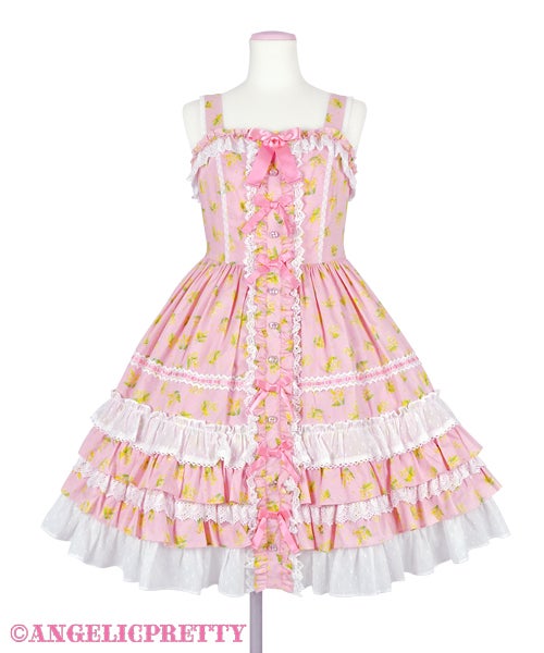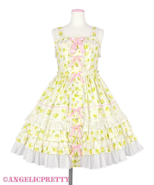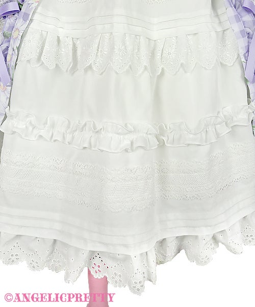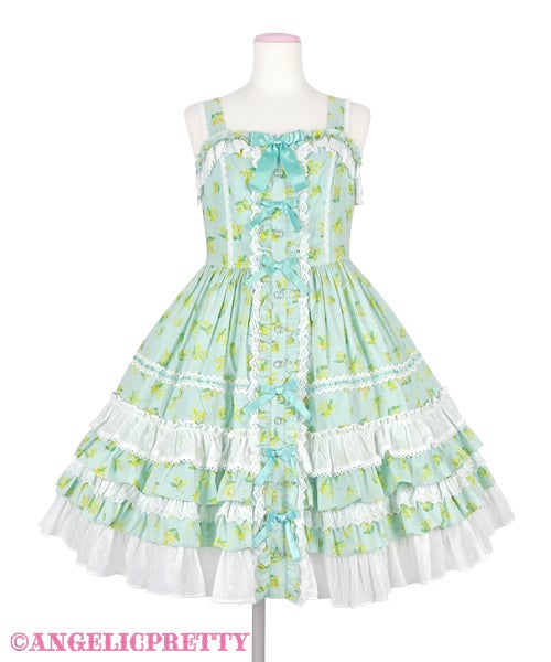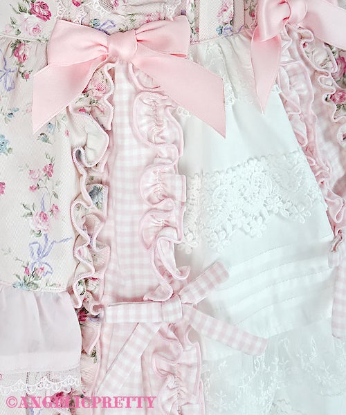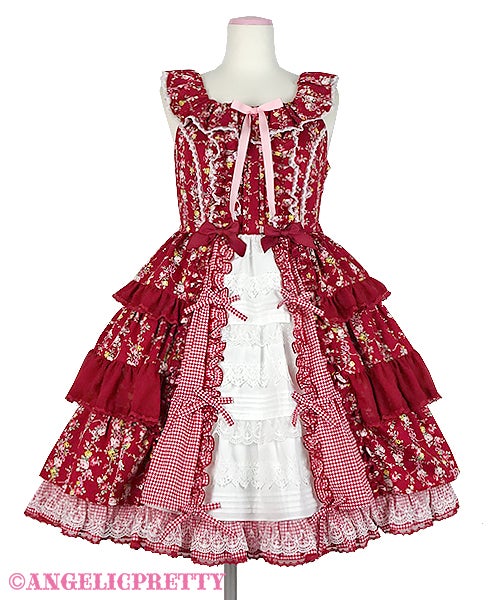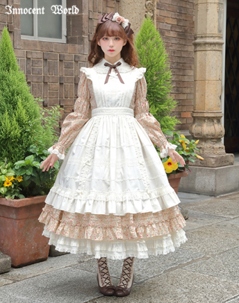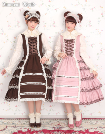 Speaking of length, Innocent World has been doing a lot of longer, 2005-2007 era styled pieces, a lot of pintucks, and a lot of longer “modern” Innocent World styled pieces lately. But interestingly they haven’t really dipped into this particular trend. The closest they have really gotten is with some of their floral OPs and aprons, but they just read more old school lolita to me. That said their pieces do fit into the wider “cottagecore” trend if we say that the wider trend is based on the idea of escapism. Innocent World might not be selling the Kaneko-kei look, but they are selling the idea that you are either the maid in an old estate, or the lady of the house. It’s definitely moving away from strictly what we think of as textbook, basic, lolita and into a longer length, and a more immersive type of feeling.