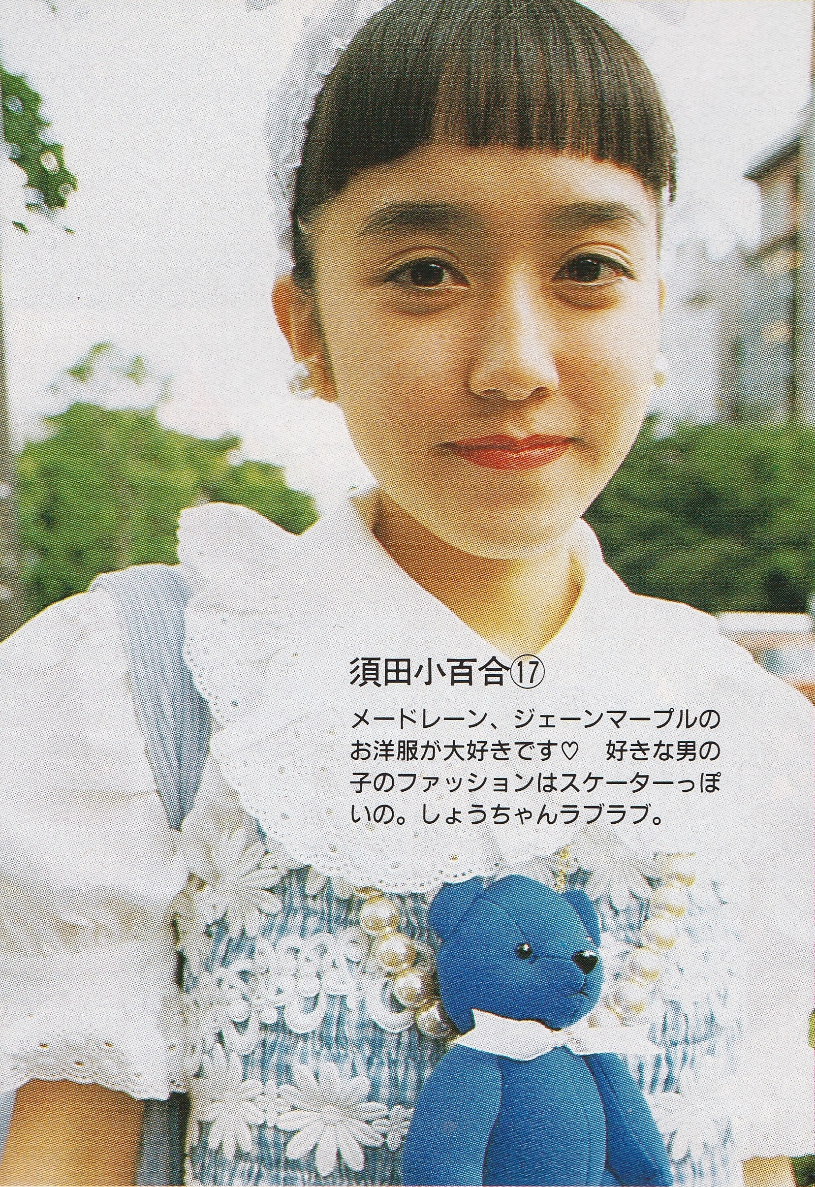If we look at the first image below, we see someone who is wearing a blouse that fits more or less into what we consider lolita today, paired with the same MILK skirt from the lolita spread in Cutie. In the center, the dot print OP and more importantly, the apple gingham print skirt are both from MILK. While the skirt might not read as current lolita, it does read as being something we might see from Emily Temple Cute, which was also considered a lolita brand in the early days. And on the right, we see quintessential old school lolita looks, and the look on the right cites MILK again. Note the deep tucks at the bottom of the sax skirt and the open work between the tiers. These features are quite common in Kaneko-kei style pieces, but in this case, this is clearly lolita. (The girl in cream on the left in the last image is wearing Jane Marple).