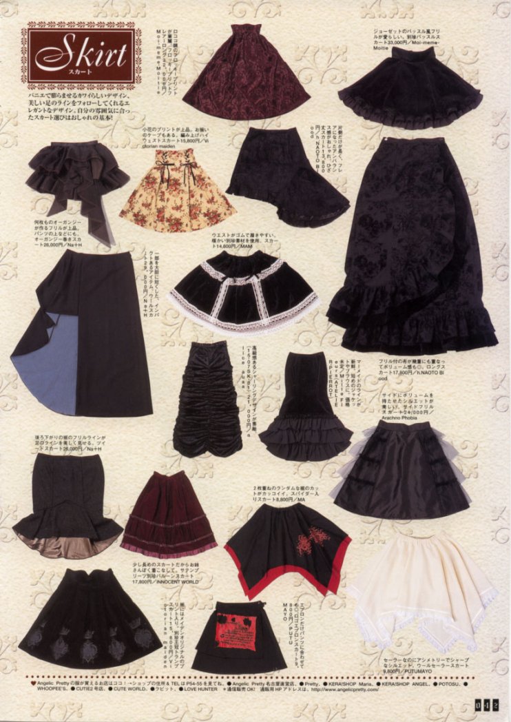 Lolita fashion really hit it’s stride in the early 2000s and we really start to see a much more rigid definition of what is and isn’t lolita. Those 1993 Cutie Spreads are replaced by spreads like these from the Gothic and Lolita Bible in 2002 (which still does have a fair bit of non-lolita gothic content) where the skirt shapes for the lolita items start to take on a pretty uniform shape. It’s around this point I think where we can firmly say that Kaneko-kei and Lolita pretty fully diverge.