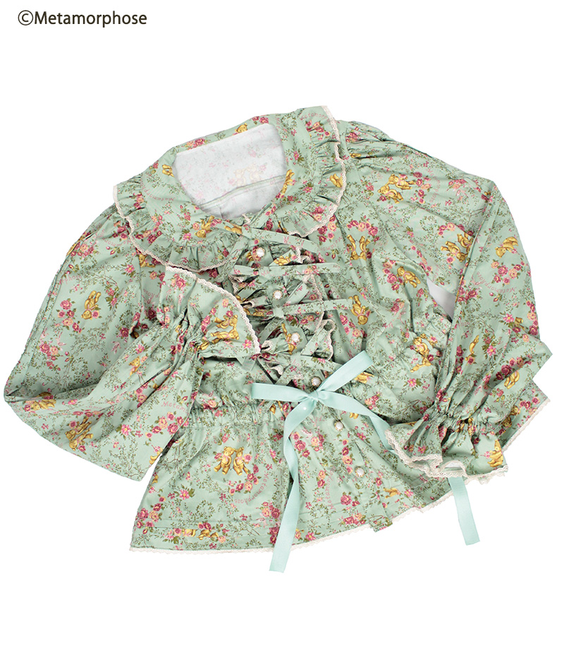 Over at Metamorphose, we have seen the Clara Doll series, with it’s matching long bloomers and floral blouse, as well as a re-release of gardening teddy with a long skirt and a print blouse. It’s not quite on the nose for the Kaneko-kei look, but it’s throwing back to like 2001 lolita, and, it’s not… not compatible either. I could wear that teddy print floral blouse with a pink house dress and it wouldn’t look out of place. I could also pair these things with the aprons Innnocent World is putting out. So while this isn’t exactly as blatantly Kaneko-kei influenced as what Baby and AP are doing, I think it’s part of a larger old-school / classic / frumpy style trend.