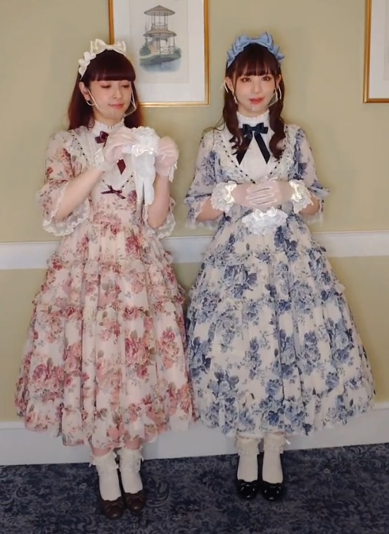 This was shown in the live, but not posted to twitter, which is interesting. I love the print, especially in blue, and I love the lightness of it and the drape. It’s a really lovely piece, IMHO. Doesn’t seem to have shirring, but they have been pretty good about doing both M and L sizes recently. It’s paired with the Suzuran Lace Gloves and Socks. The gloves are interesting, they have a sort of sheerness to them. Personally, I’d prefer to see this with longer socks or tights, but the short socks are in style now so… it is what it is.