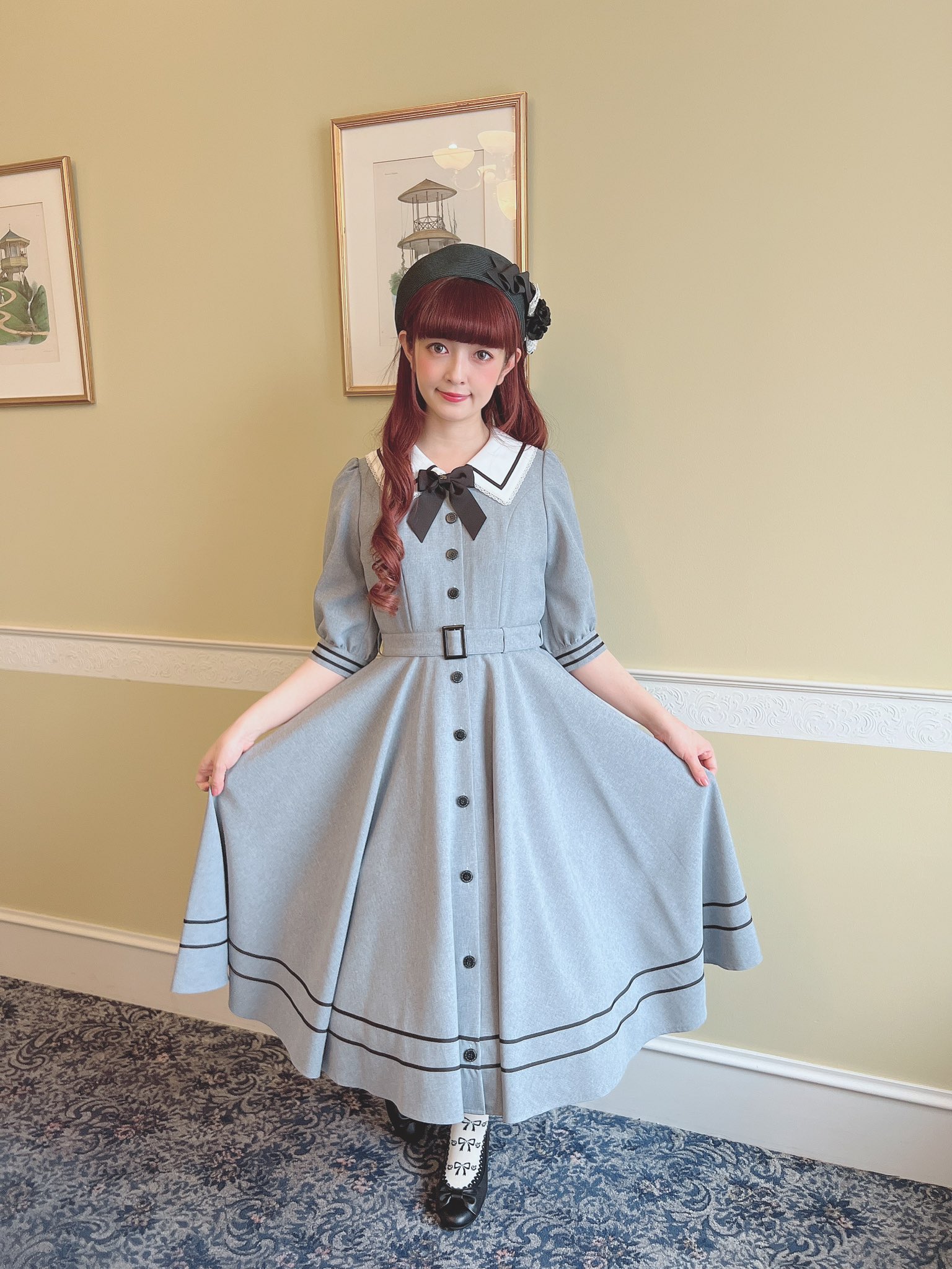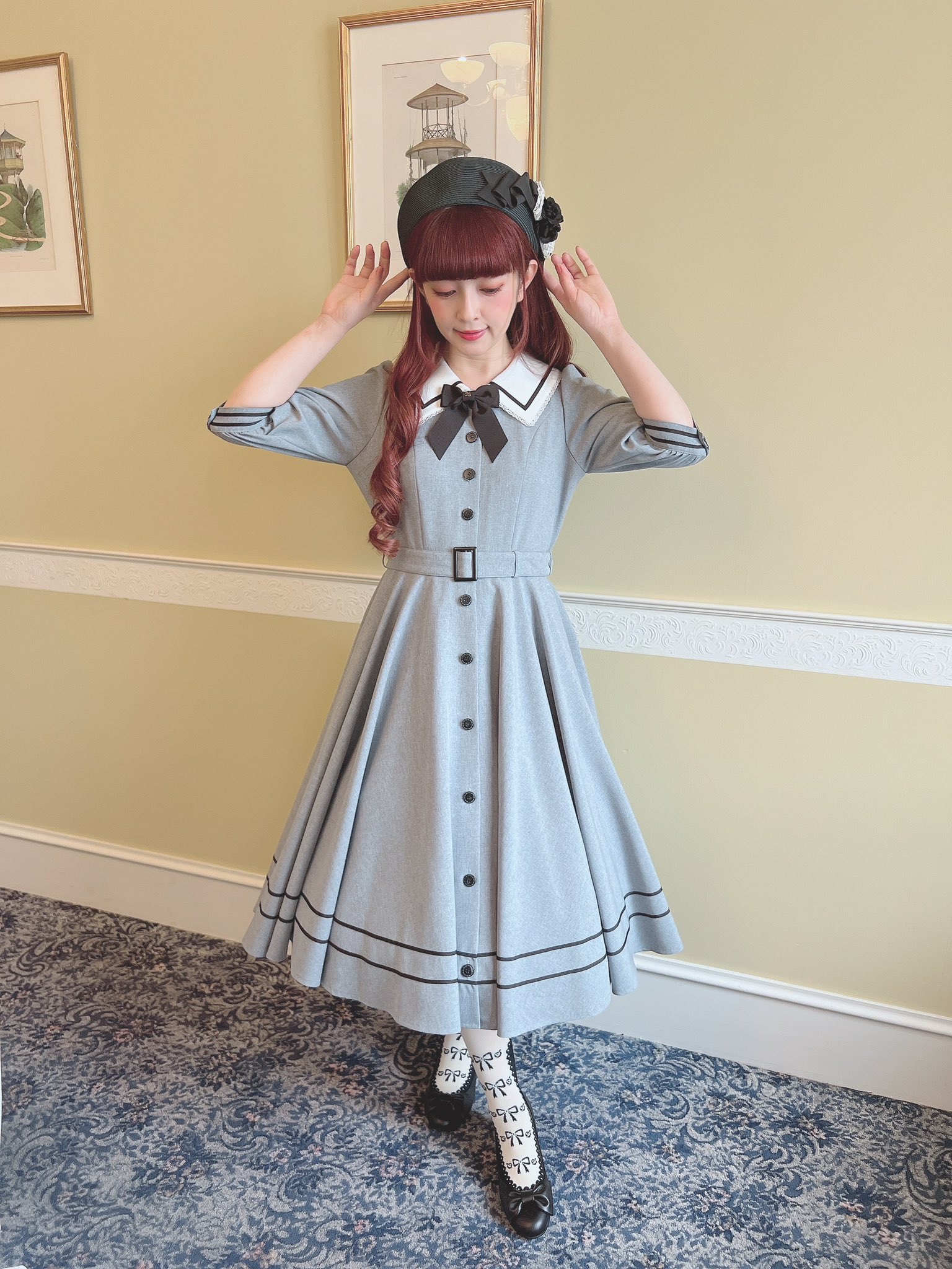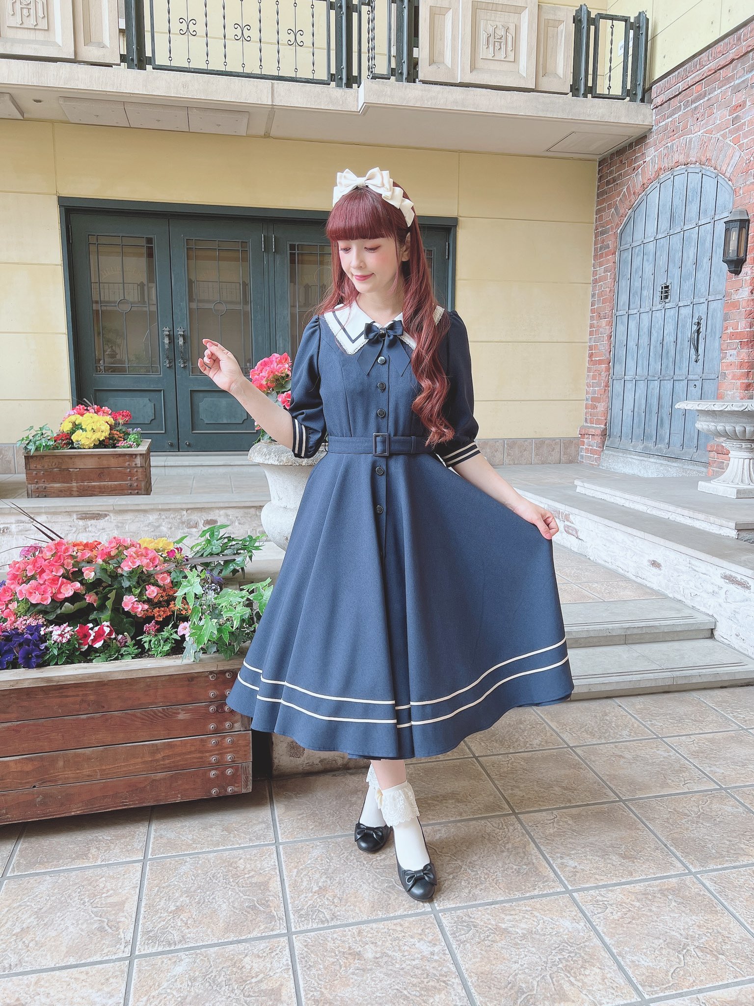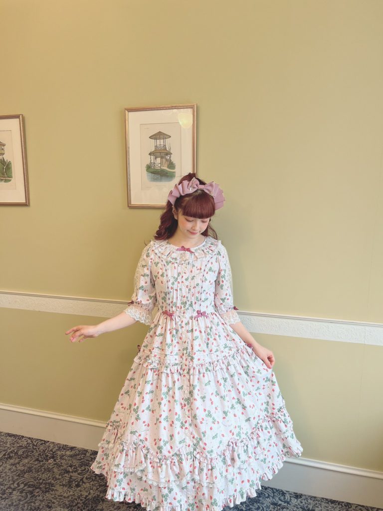 They have paired it with the Romance Ribbon Hat which is almost sold out, and with what looks like the Plain Tuck Ribbon Headband, which is also sold out. I really like the ribbon bow and hope they give us a re-release with the OP release. I think it really suits the dress and gives a nice overall look.