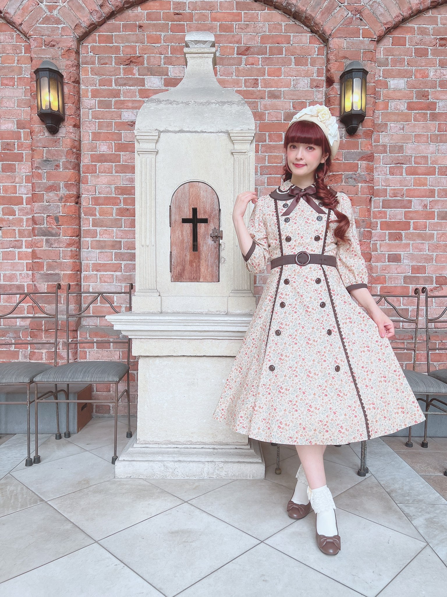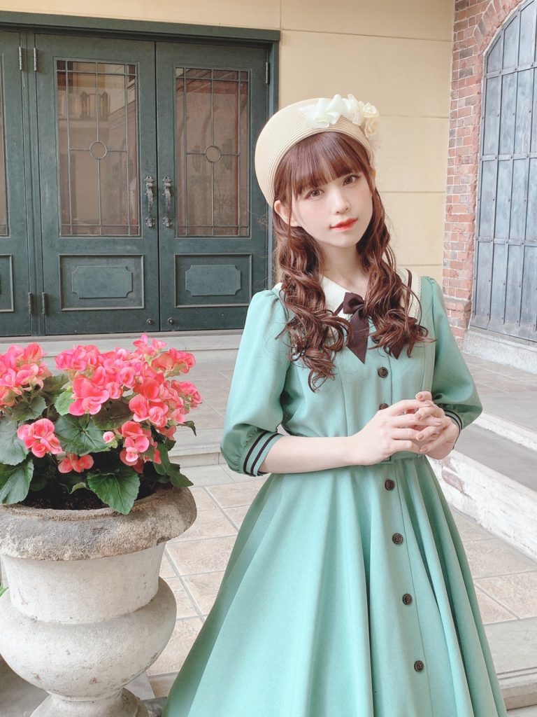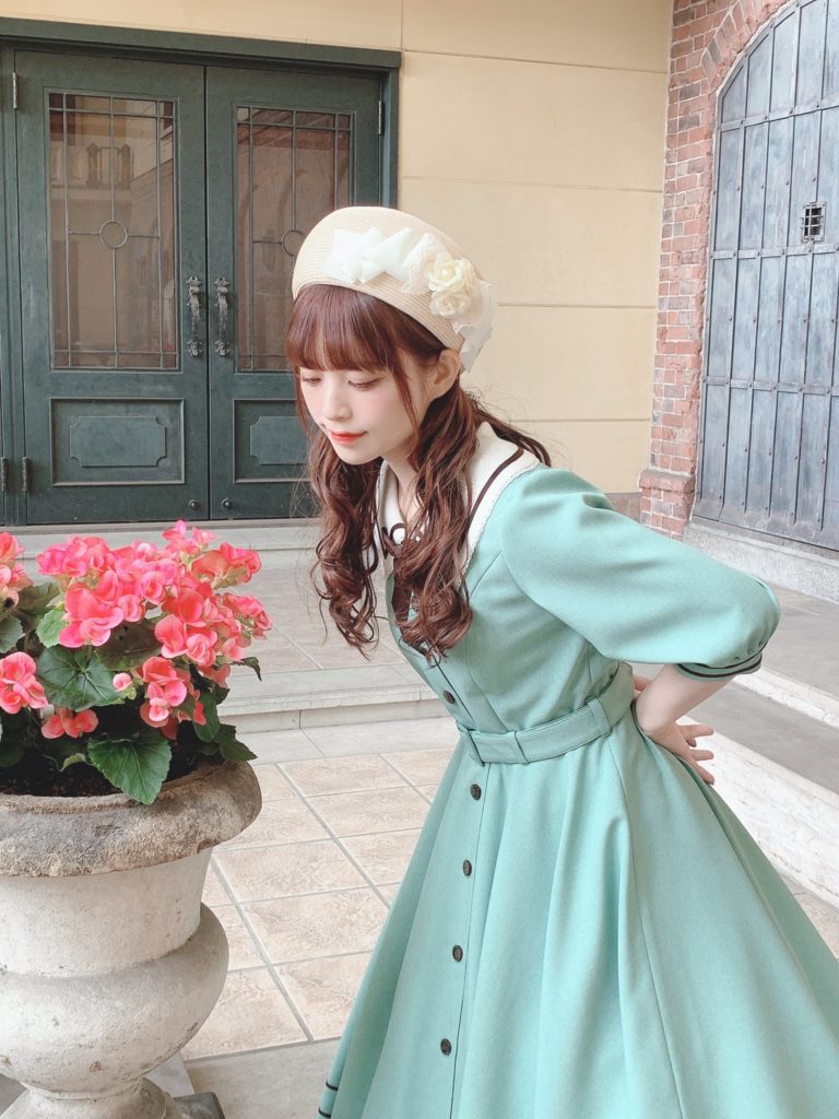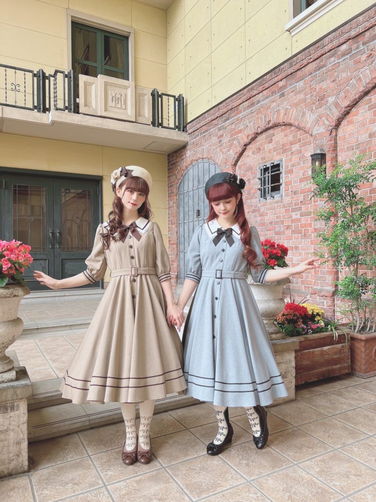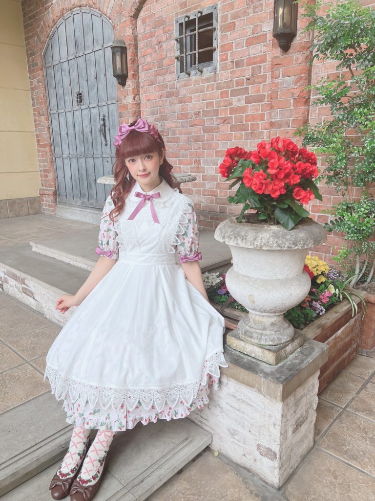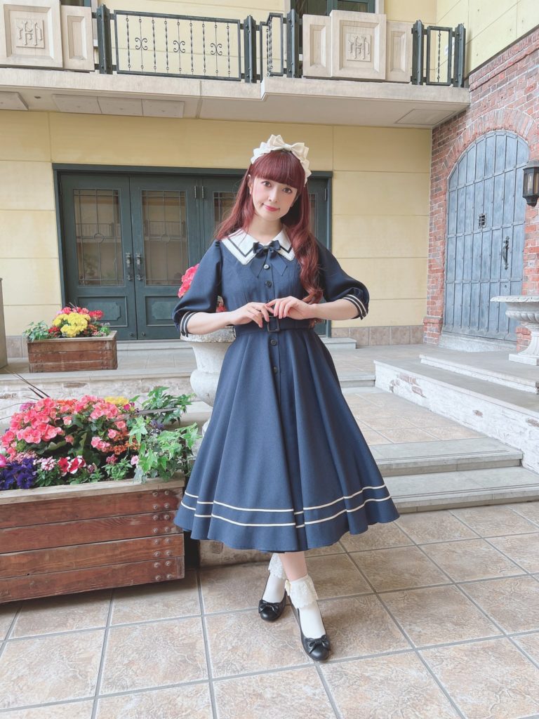 This sort of brown quilt floral is not my cup of tea. I don’t really love it in quilts and I love it less as clothing. The dress cut is cute, but I’m not personally feeling the print. I feel like this is probably the most likely design to end up on the sale racks, if anything lasts that long. It looks to be almost identical to the Luna OP, (which is sold out in every color except for Green in size L), and I like it much better as a solid. Paired again with the Romance Ribbon Hat and some cute ankle socks. I personally am not feeling the ankle socks with this, but, it may just be because this dress isn’t to my taste.