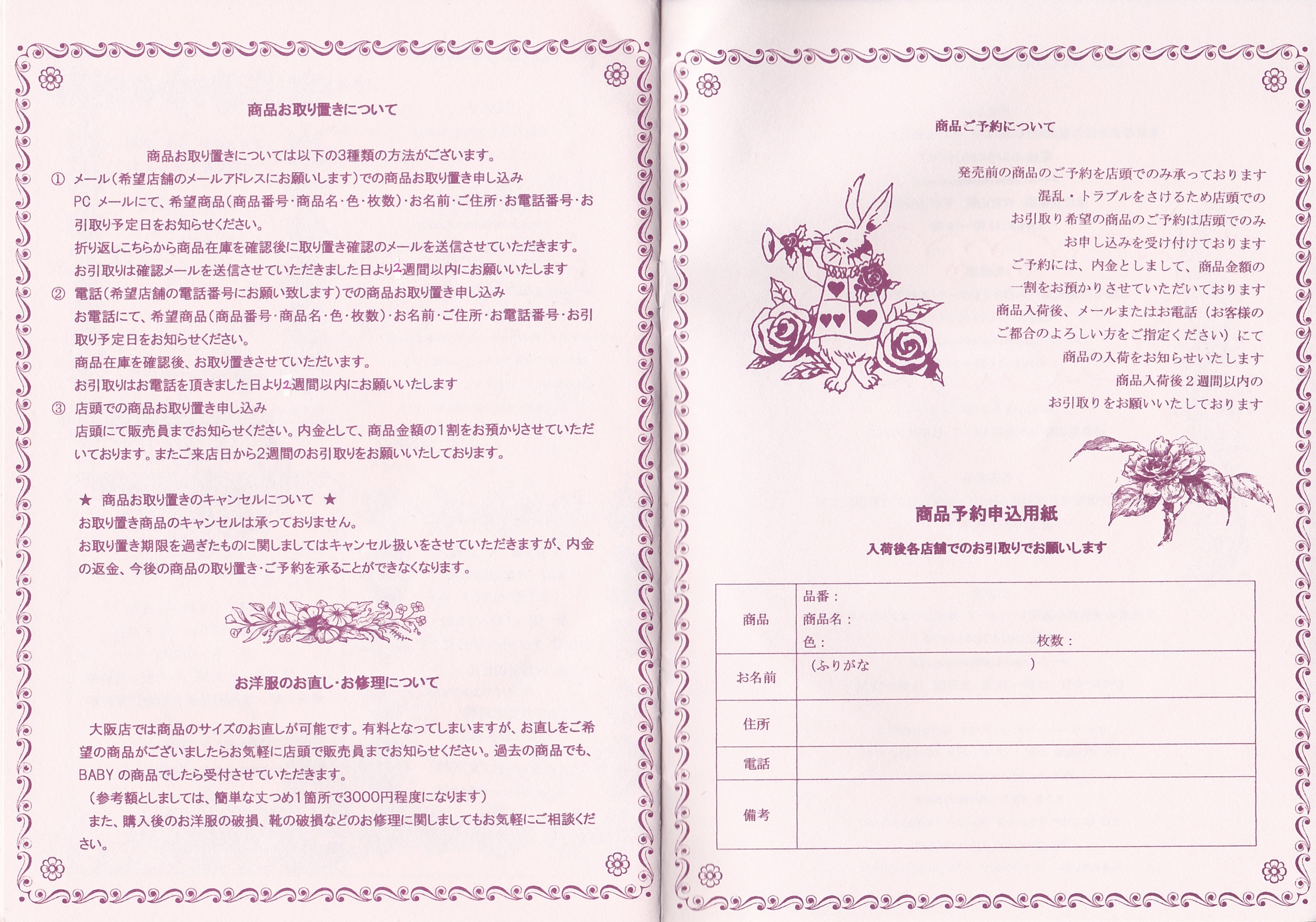 The Gothic Lolita Pink Brand Book was basically just the new item section of the Gothic Lolita Bible, with a little bit of other information thrown in. It also covered a few more brands.
