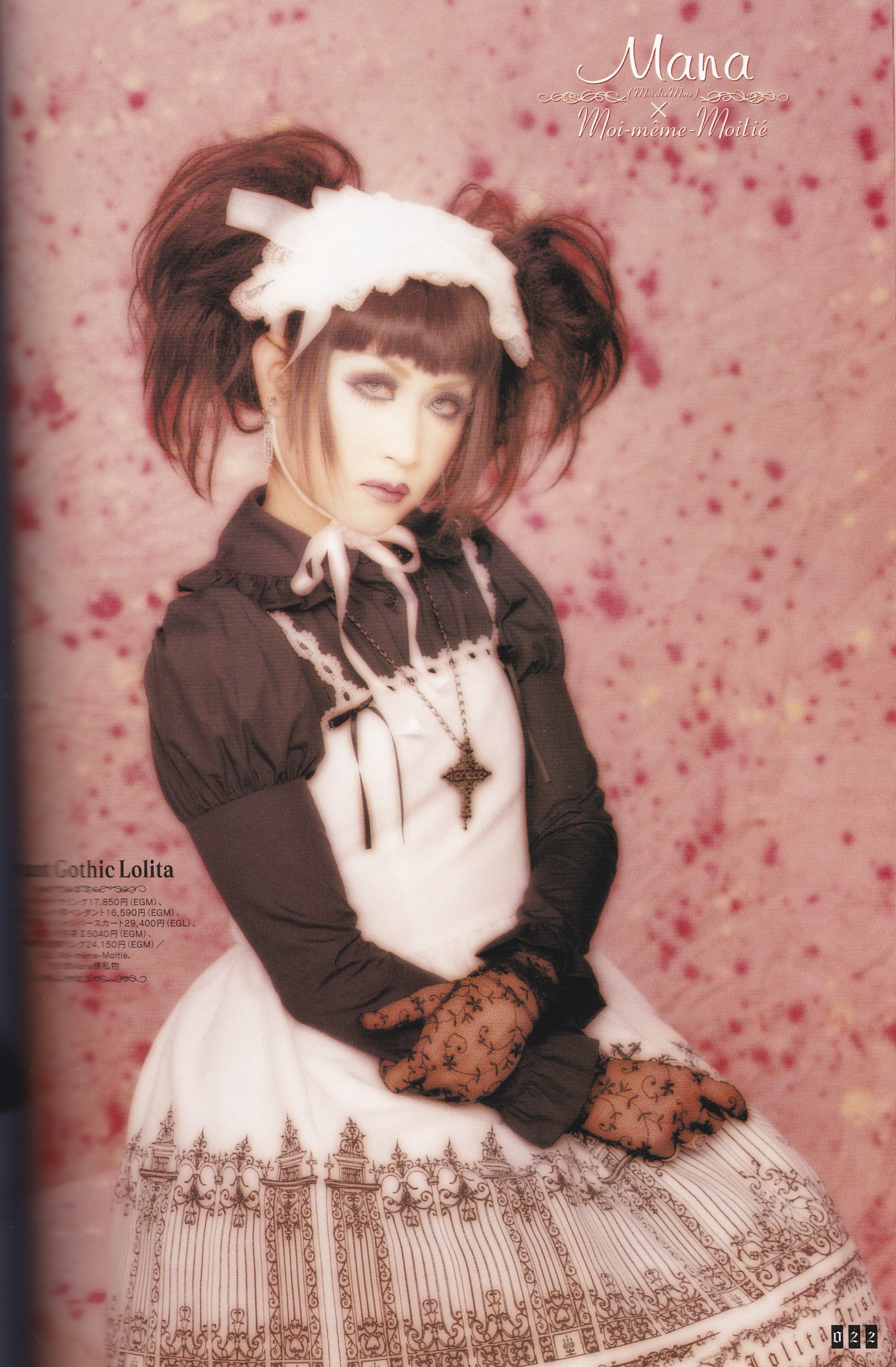First of all, Iron Gate. Iron Gate was released by Moi-même-Moitié in 2006. It was featured in Gothic Lolita Bible, Volume 20, where it was modeled by Mana, himself. One thing that is very interesting to note, in my opinion, is the opposite page. That left hand column talks about the latest album from Moi dix Mois; Beyond the gate. This issue of the GLB hit news stands a little less than a month after the album release. And in the side column, Mana talks about his latest Moi-même-Moitié collection and his latest musical work, which are tied together by this theme of gates. It didn’t all immediately sell out, though, in 2006, very few things did. In fact, In april, the JSK was still available in black x white, and black x navy, and the skirt was still listed in most colors in may. At least one cut/color of the skirt was still available a year after release. So, while we can infer that the white colorway, the bag, and the OP cut, at least, were immediately popular, it appears that the series as a whole wasn’t immediately gone from stores. In fact, someone even posted in 2009 that they had an easy time buying it from CD Japan, who used to sell MMM overseas, because of how long it had been available.