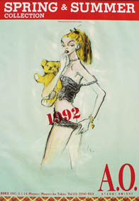 The brand would go on to primarily stylize their name as A.O., with that mark appearing in fabric textiles. Note the difference between the 1988 and 1992 collection posters below.
