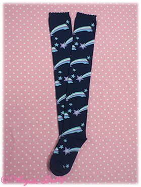 Shooting Star OTK Socks (Navy Blue × Lavender)