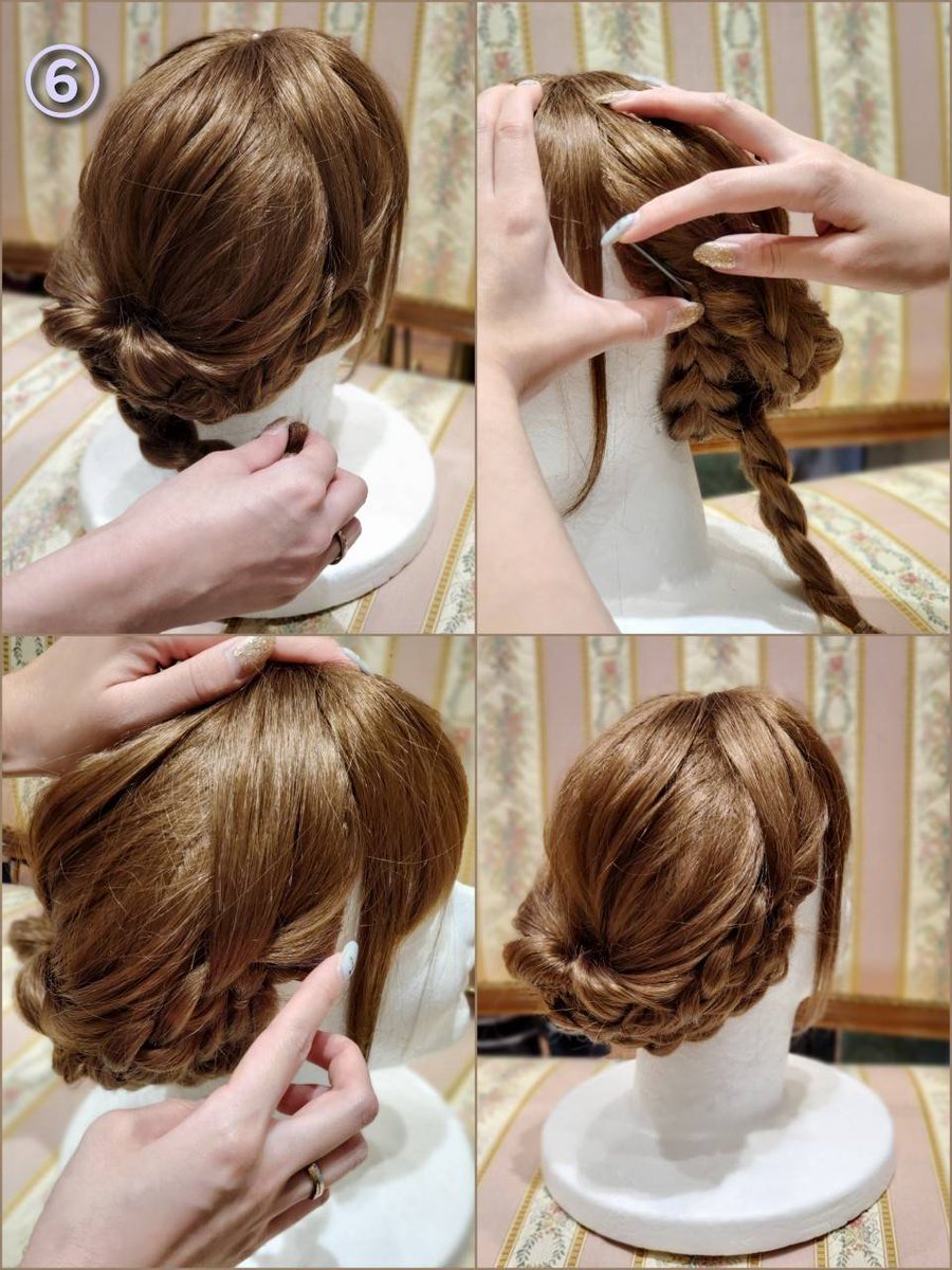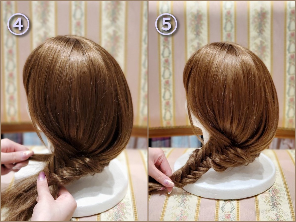③ Braid the remaining side hair bundles and tie the ends round so that they can be easily pinned.