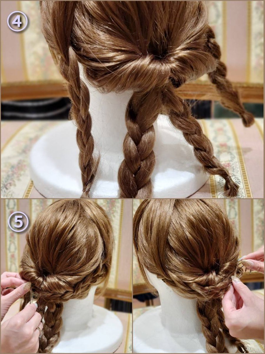 ⑤ Cross the braids of ③ and pin them.