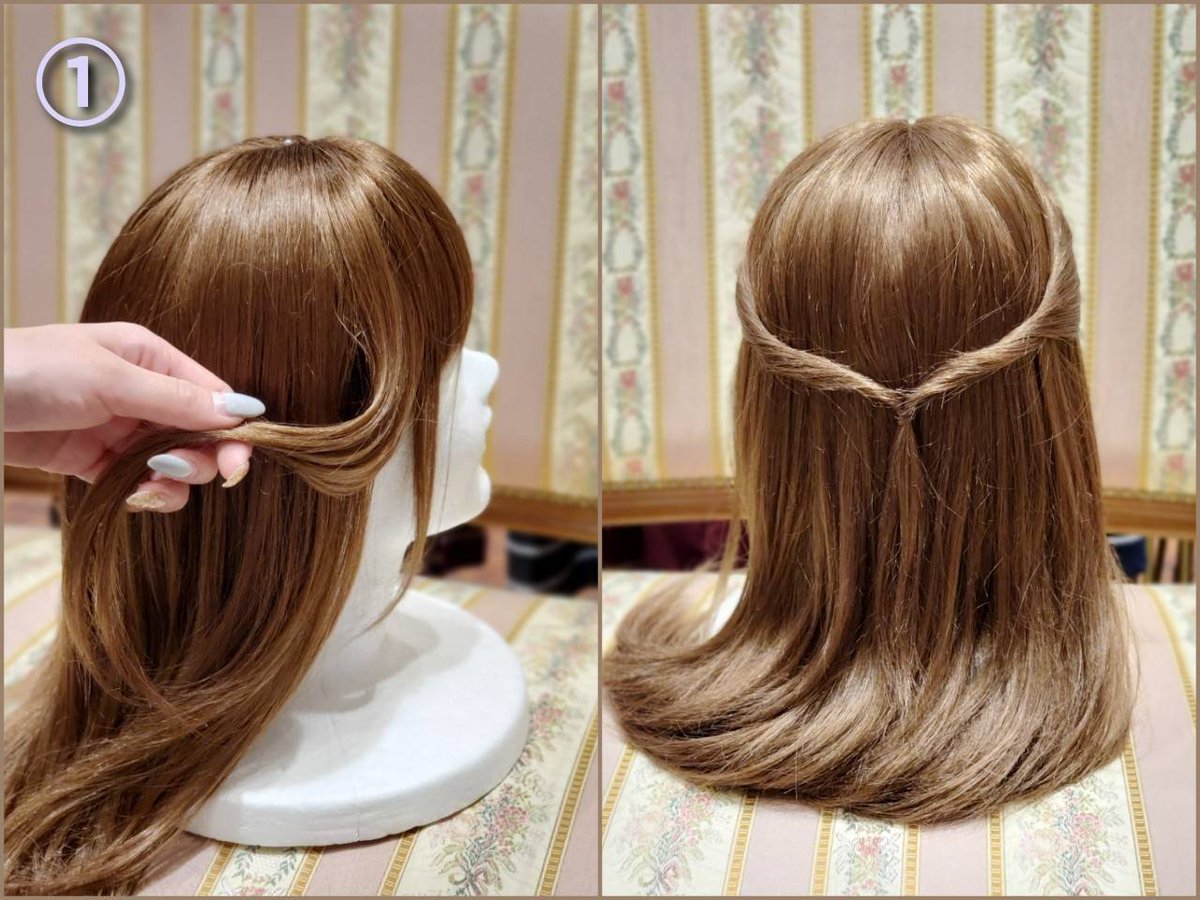 ① Remove a little hair above the ear and tie it loosely