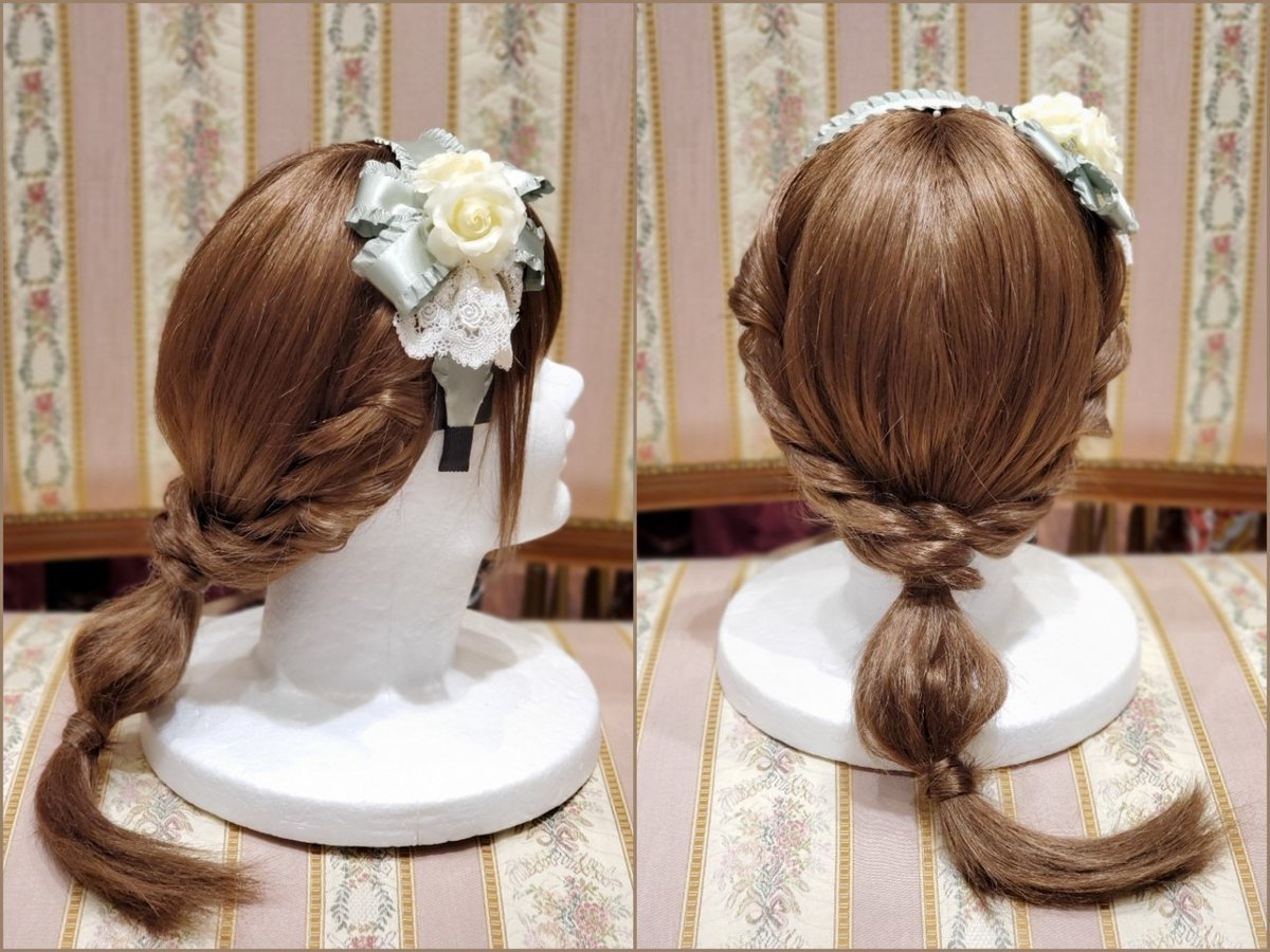 毛先や編込みにリボンを付けて完成