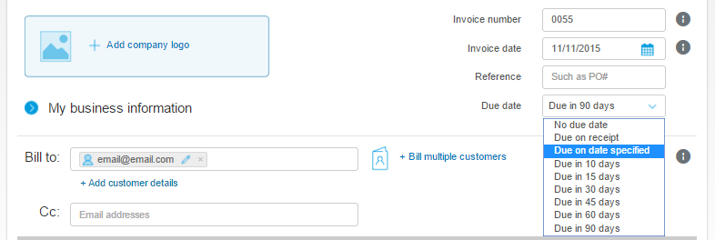 First, you want to put the email of the person you are invoicing into the Bill to: line like normal. If they asked to be emailed at another email address, you can put that under Cc: and they will get all the emails about this invoice at that email as well (good for people who don’t use their paypal email address as an email address).
