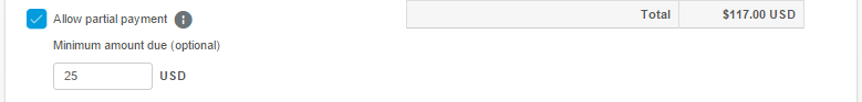 this is where the magic happens. To the right of the total line, there is a box that says “Allow partial payment”. If you click this, it gives you the option of entering a minimum payment, or leaving it blank. I personally would suggest either putting in what you worked out as the payment amounts with the buyer, or putting in at least $5-$10 on a smaller item, or $25/$50/$100 on a more expensive item. You really don’t want someone to pay you a single dollar each time, especially as I was unable to find any documentation that explained if you would be charged the $0.30 US usage fee each time they make a payment, or not.