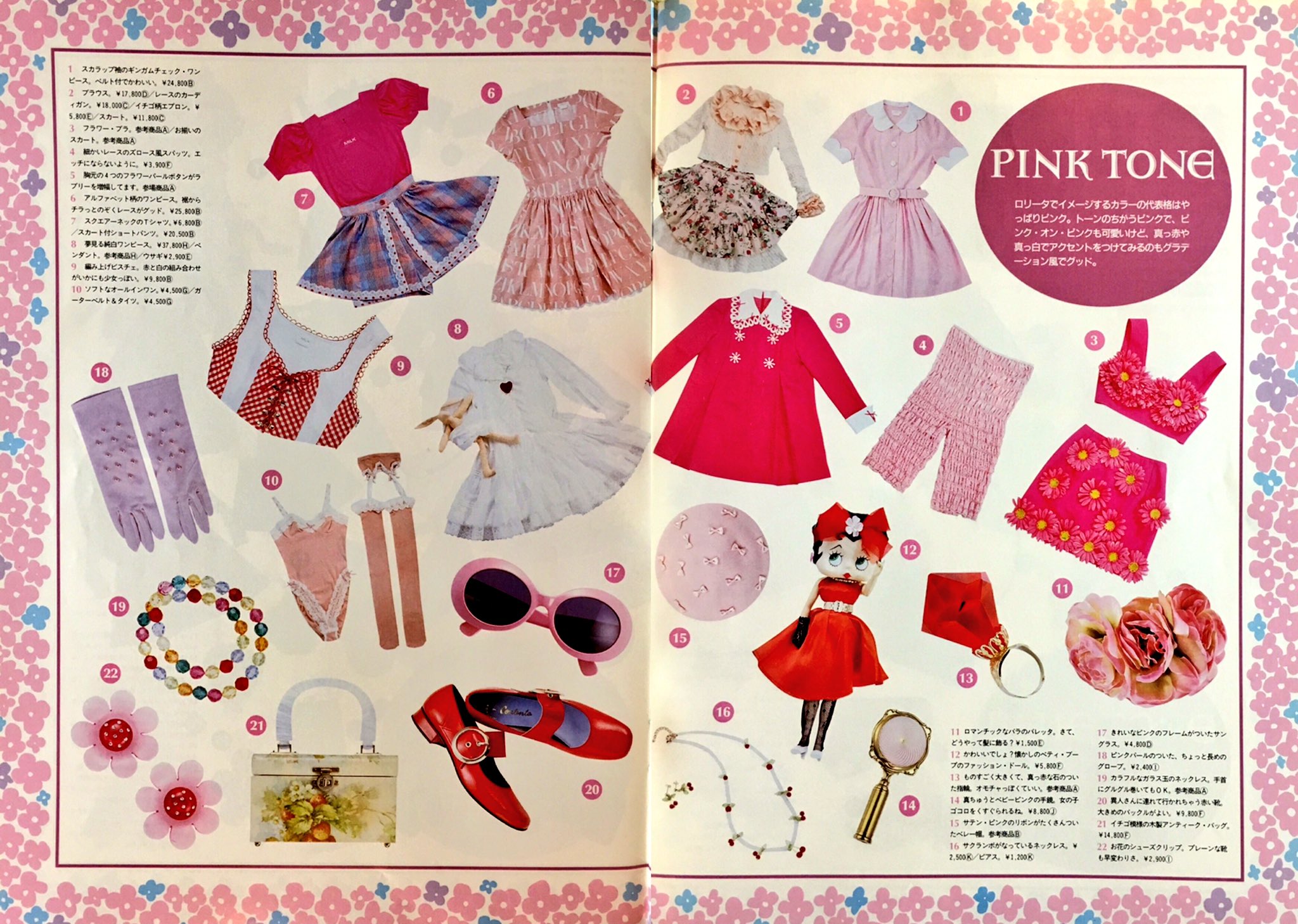 I can definitely see the visual connection between what is considered lolita in Japan in 1994 and what we consider to be lolita today. However, when we look at that cutie spread from 1993, I do also see things that are questionable. There are bathing suits, and crop-top + mini skirt combos that are a lot more the other lolita. (Fun side note, it uses the term sax on the blue page! It also suggests that pink is the most lolita color, with blue being the second best and monochrome is for if you want to try to be a liiitle more chic).