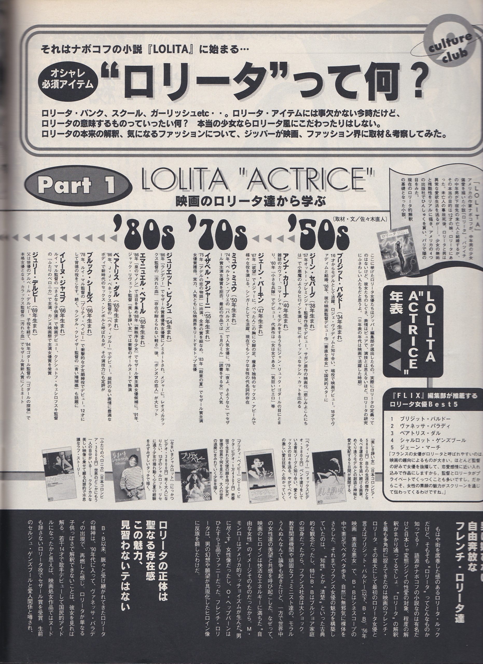 The article is split into two sections. Part one looks at actresses and part two looks at lolita “mode” (Lolita in fashion).