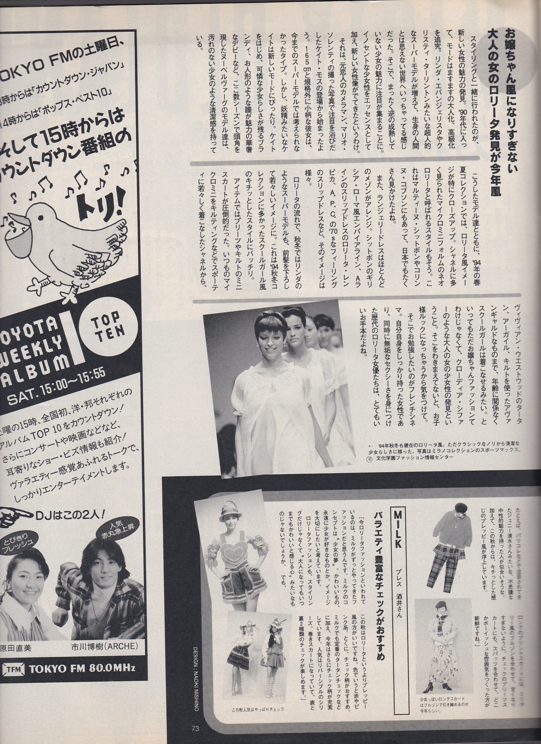「今ロリータフアツシヨンといわれて いるのは、ミルクがずっとやってきたフ アツシヨンだと思ぅんです。