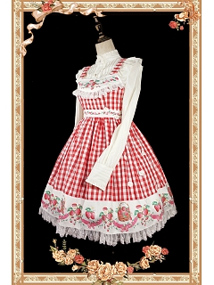 Sweet Strawberry Lolita Dress Cotton Red Plaid Strawberries Print Lolita JSK by Infanta