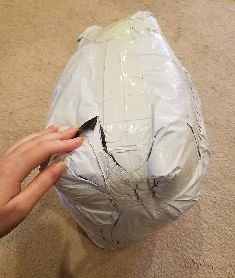 When the package arrived it looked like this. Remember, this contains a bonnet and $400 worth of stuff and has been in the mail for a month. I wasn’t really impressed.