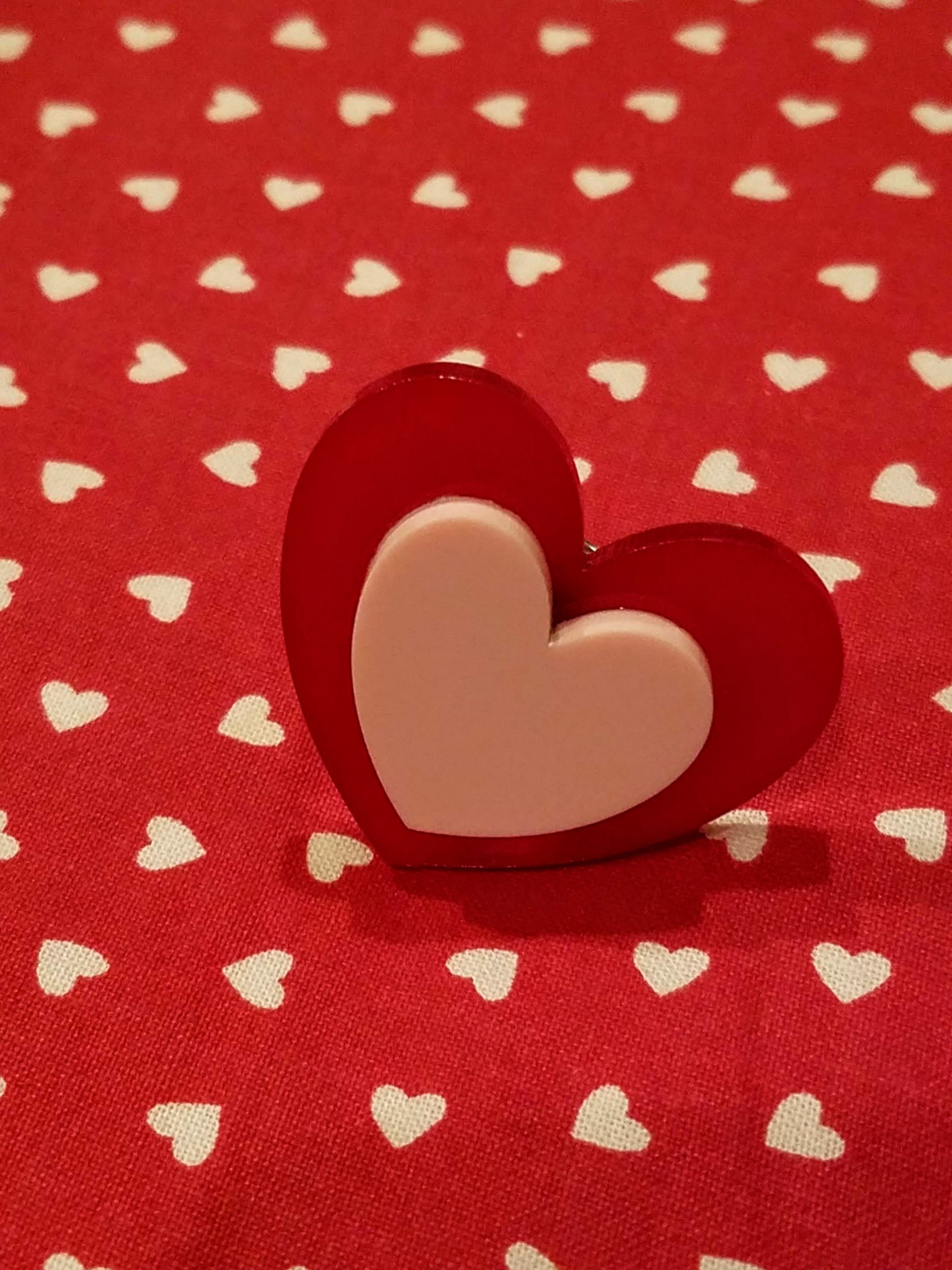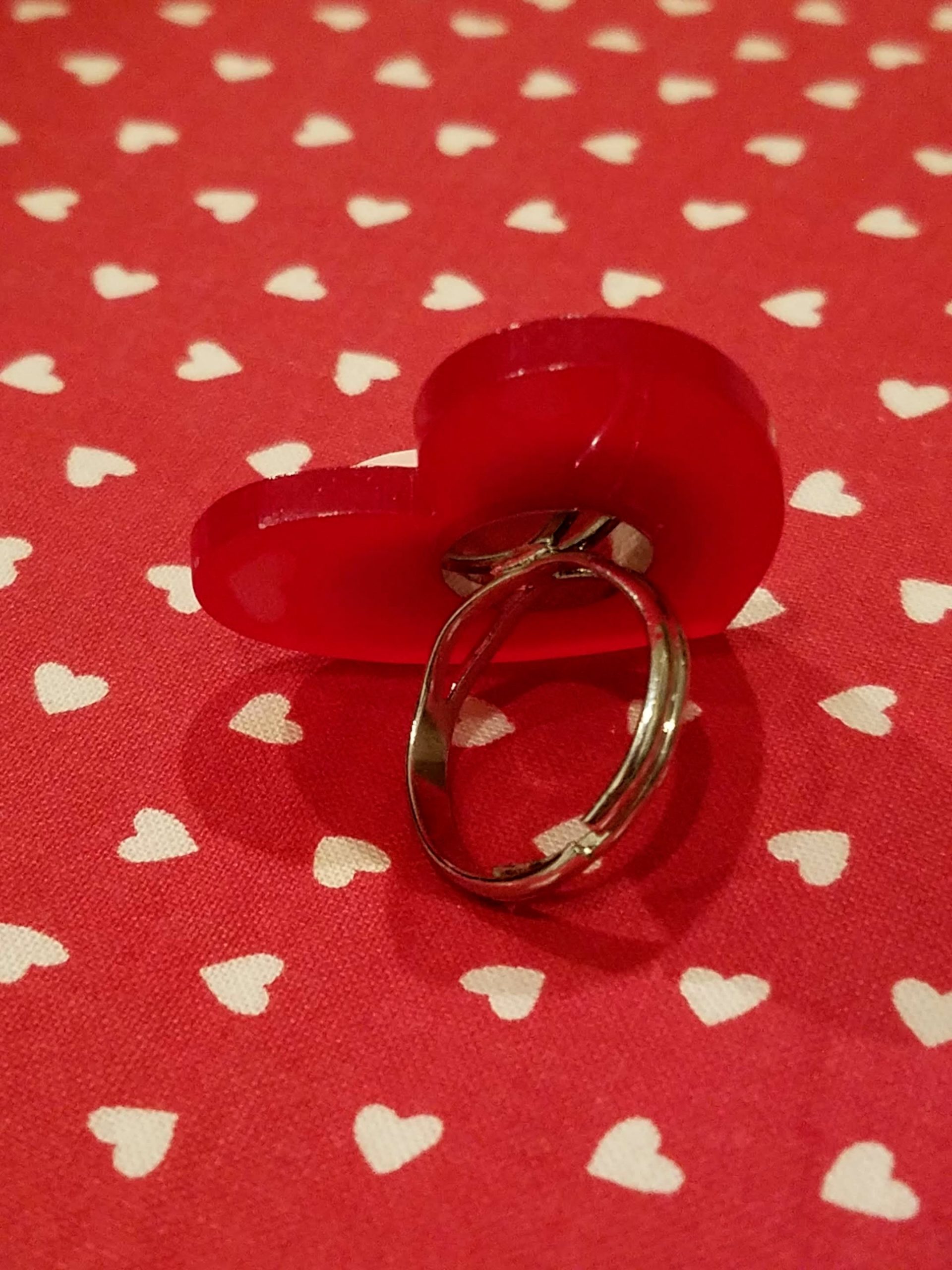 First up is the “Layered Heart Ring” which I ordered in the Red x Pink colorway (tip: when you select a color it will show the preview of that color). There are currently 9 color way options which mix and match pink, lavender, red, sax, black and a frosted clear option. Each ring is $10 CAD ($8 USD) and has a Nickle free adjustable ring base.