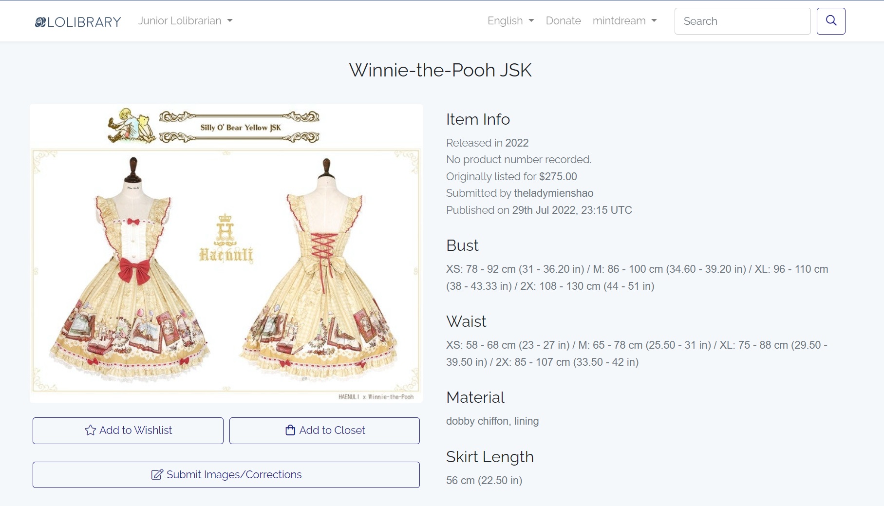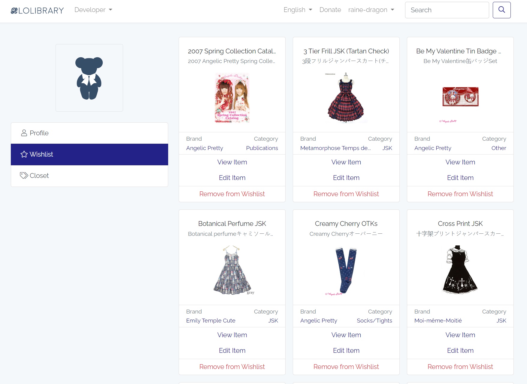 Also, if you are reading this thinking “What do you mean closets and wishlists on lolibrary”, I’d like to take a quick moment to show off this feature. If you register for a lolibrary account and join our 12,549 other members, you will see an “add to wishlist’ and an ‘add to closet’ button under the main image of each item.