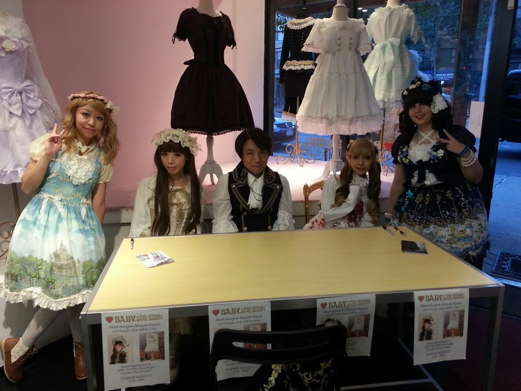 We were running a little late because of how hard the subway was to navigate, so my girlfriend and I got dressed to head over to Tokyo Rebel, while Rachel went on ahead to try to catch the Putumayo designer Hasegawa before he left (his signing was first, and it was getting late). Apparently, she juuust caught him in time. Thankfully, they had already lifted the “wakuwaku ticket holders only” rule they had in place, because Rachel was getting a vender’s badge, and thus had no proof of purchase of a wakuwaku ticket. We got there too late to see Hasegawa, but we did get to see Isobe, Masumi Kano and the Baby shop girl Rin.