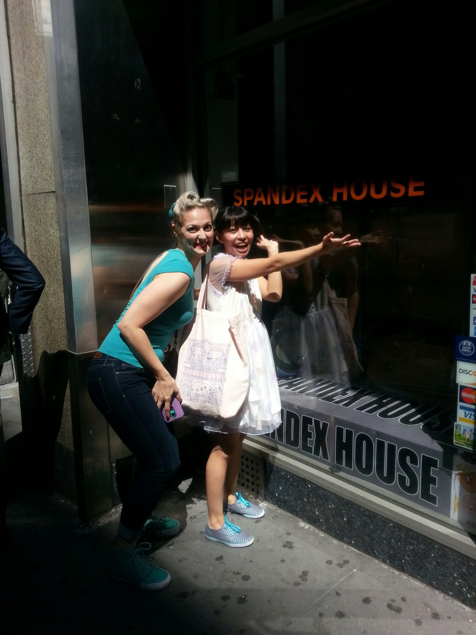 On the way to Mokuba, we passed Spandex House where the belladonna designers had to stop and take a silly photo.