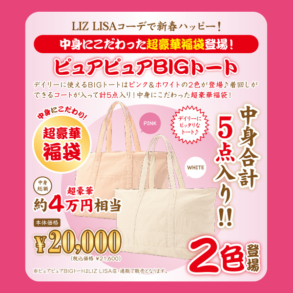 ※ Pure Pure BIG tote will be sold in the LIZ LISA stores and online.