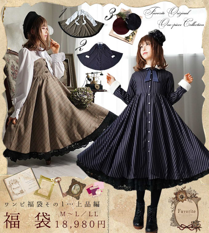 30,000 – 40,000 yen in value, and truly random. Can contain blouses, dresses, etc, it basically makes 0 promises except that it’s all original items they designed. You can select M~L or LL size.