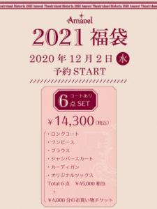 We will start accepting reservations for ◆ Amavel 2021 lucky bag ◆ from Wednesday, December 02, 2020.