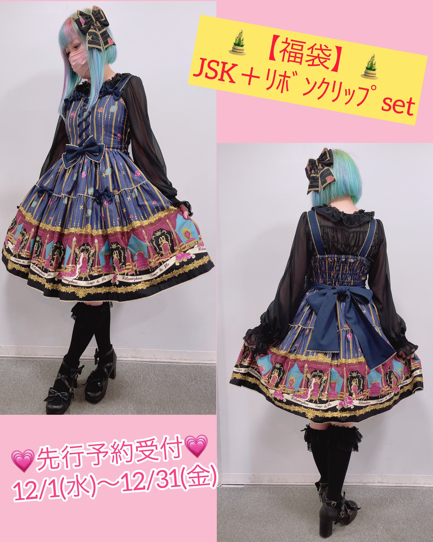 It’s become a little like “black friday” in the United States where some stores that don’t have great things to put on sale (maybe they just don’t have a lot of clearance) will often stock a limited number of a specific item just for these sales. In these cases, they usually call them “Special Sets”, instead of “Lucky Packs”. These bags can contain either all items that were made just for these sets, or a mix of special items and clearance. Baby the Stars Shine Bright and Angelic Pretty both design new prints for their new years special sets. While Metamorphose is known to use leftover material to make skirts and dresses in simple patterns.