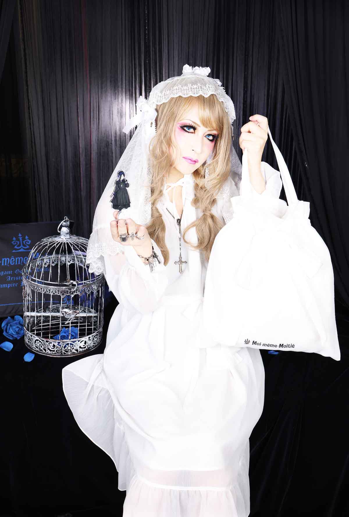 It looks like you get a long OP and tote bag in either black or white, a hand towel (washcloth) and one of the Mana-sama acrylic standees they have been producing lately.